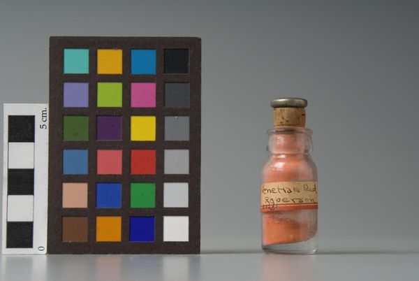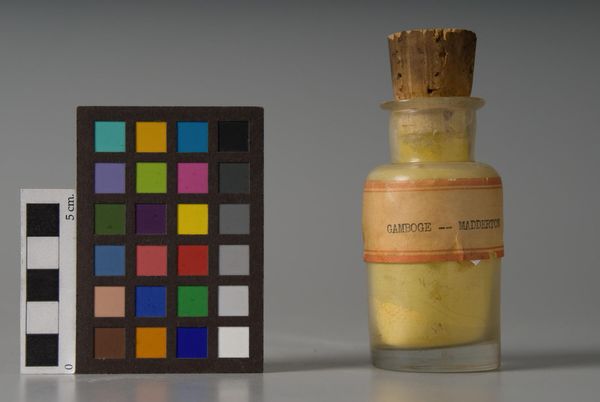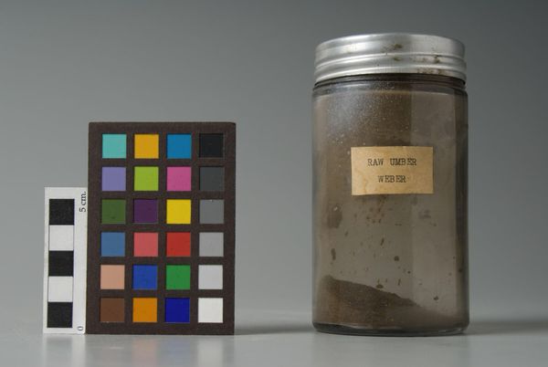 Editor: Here we have *Raw Umber*, a pigment manufactured by F. Weber & Company. It feels like a relic, a container holding the potential for art. What stories does this humble material hold? Curator: This seemingly simple jar unlocks complex histories. Umber, derived from the earth, connects us to the exploited landscapes and labor that fuels artistic production. How do we reconcile the beauty created with this pigment, with its potentially problematic origins? Editor: That's a powerful point. It makes me reconsider the value we place on art without questioning its source. Curator: Exactly. By confronting these uncomfortable truths, we can foster a more ethical and critically engaged appreciation of art. Understanding where our materials come from is crucial. Editor: Thanks, this really makes you think about the bigger picture.