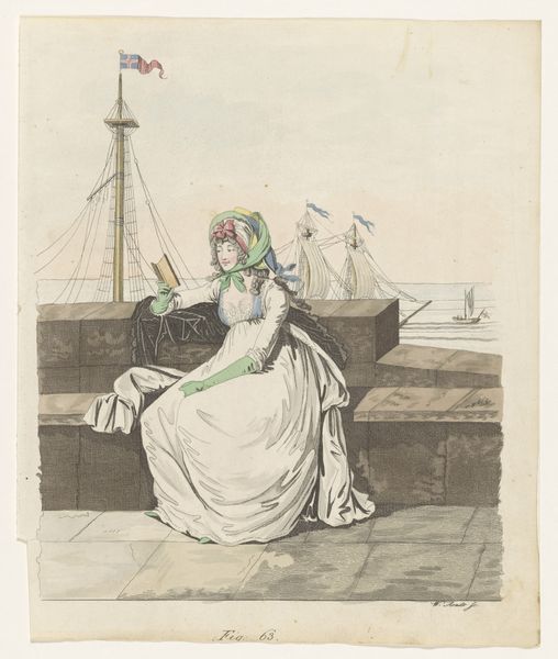 Curator: Here we have a print entitled "Gallery of Fashion, vol. IV: April 1 1797 - March 1 1798", dating roughly from 1794 to 1802, by Nicolaus Heideloff. It's currently held here at the Metropolitan Museum of Art. Editor: It's striking! I'm immediately drawn to the fabric of the dresses. The way those lines create volume, almost like sculpture, really captures my attention. There is also something very "off" about it. It’s unsettlingly fragile. Curator: Indeed. These fashion plates served a distinct social function. Consider the era: England at the height of its empire, fashion becoming increasingly democratized, yet still rigorously policed by publications like this. Editor: So, almost a how-to guide, but with added status? You could study the fabrics and trims in exacting detail... the consumer literally buying into the image and labor associated with such garments. What are the dresses made from? The material appears to be woven linen? It looks expensive due to how form-fitting it is, even while running in the wind. Curator: Exactly! It's a curated projection of status and propriety, a type of soft power communicated through printed image. Think about how this imagery circulated and to whom, solidifying ideals. Editor: And it speaks to labor! Engraving these plates and sourcing the clothing. Those processes speak to consumption across many societal tiers. Curator: Precisely! This plate offers insight into a system of artistic creation and social aspiration intertwined with complex economics and gender roles. Notice how the print itself, an accessible medium, participates in defining what is "fashionable" during the Romantic era. Editor: What strikes me most is the delicate interplay between the image's accessibility as a print and the high cost of the items displayed within. So many social narratives get stitched into this picture through the very materiality and labor required to produce both dress and the page itself. Curator: A good point about materiality. Fashion, art, society – it's all interwoven. Editor: I love it.