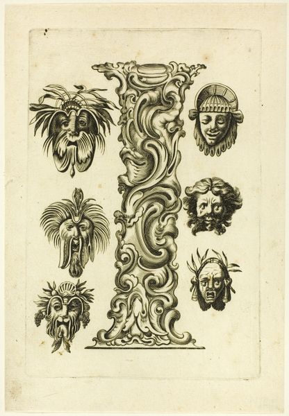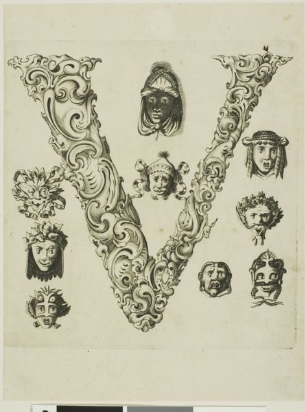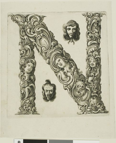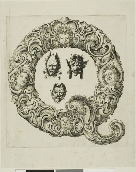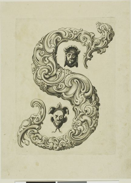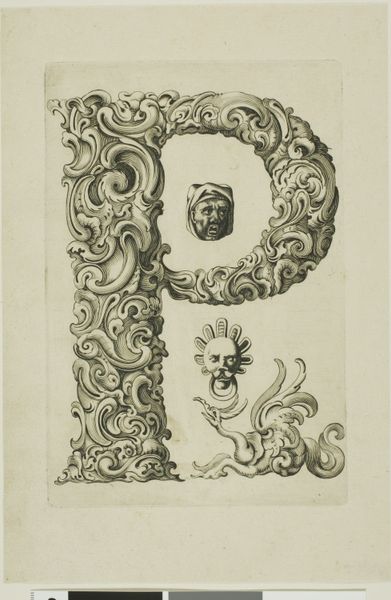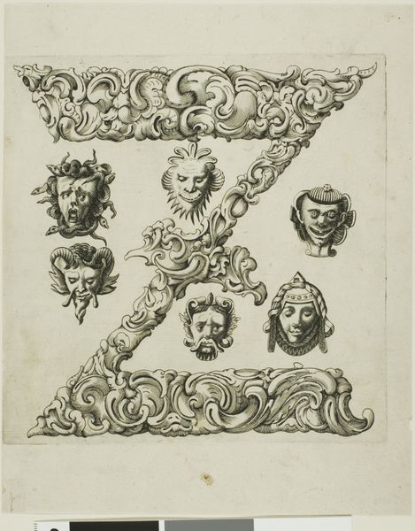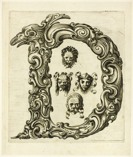 This is Peter Aubry’s etching “Letter C”, made sometime between the late 16th and mid-17th century. The letter "C" is formed by swirling acanthus leaves, a classical motif symbolizing immortality and regeneration. But look closer and you'll see nestled within it, several grotesque masks stare back. These masks, with their exaggerated features, link back to ancient theatrical traditions. Think of the masks worn in Greek and Roman plays, amplifying emotions and archetypes for the audience. These images are a conscious revival of classical forms, but imbued with a darker, more unsettling sensibility. It's as if Aubry is tapping into a primal fear, a collective memory of the monstrous and the absurd. The juxtaposition of the classical acanthus with the grotesque faces creates a tension, a dialogue between order and chaos, beauty and the beastly. Consider how these faces resurface centuries later in the works of Ensor or Picasso, transformed yet still echoing the same potent blend of mockery and dread. The emotional power of the image lies in its ability to evoke a sense of unease.