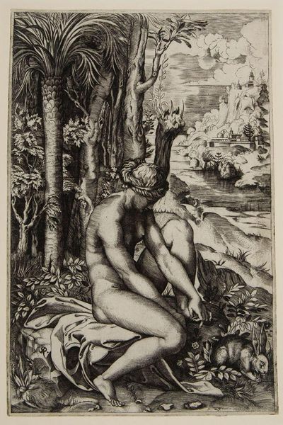 Editor: Here we have "Nude in Contemplation Seated on a Rocky Ledge" by Salvator Rosa. The figure seems so isolated and lost in thought. What can you tell me about this piece? Curator: Consider the context of 17th-century Italian art where powerful male figures dominated narratives. How might Rosa be subverting those traditions by presenting a nude woman in a moment of private reflection, rather than as an objectified ideal? Editor: That's interesting! It almost feels like she's reclaiming the space. Curator: Exactly. And what could that moment of reclamation represent in terms of the societal constraints placed upon women then? Editor: I see! It’s a lot more complex than just a pretty picture. Curator: Precisely, and by contemplating her position, so too might the viewer.