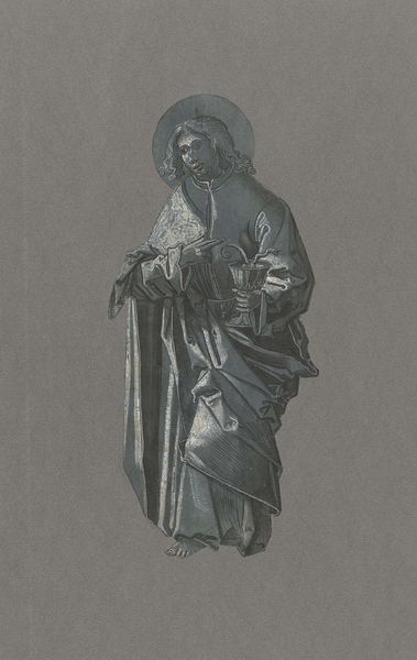 Editor: We're looking at "Angelus Ministrans," a drawing by Edward Burne-Jones, created around 1896 using charcoal and pencil. It depicts a single figure, possibly a messenger or angel. The muted tones and draped fabric give the piece a rather melancholic feel. What do you see in this work? Curator: Melancholic is spot-on! For me, this piece hums with a kind of pre-Raphaelite yearning. Burne-Jones was obsessed with medievalism, but his Middle Ages weren't about knights in shining armor. He found the ache in beauty, the bittersweet side of mythology and faith. The heavy drapery isn't just fabric; it’s like a physical manifestation of sorrow, clinging to the figure. Notice the downturned gaze—it speaks volumes. Makes you wonder what burden this angel carries, doesn’t it? Editor: Absolutely! The figure seems weighed down. And the textures are incredible for a drawing! I didn't realize how skilled he was as a draughtsman. Curator: He was a wizard with line and shadow! Think about the symbolism too. An angel isn't just a cheerful Hallmark card figure. It's a messenger, often delivering tough news, mediating between worlds. And Burne-Jones' angels? They seem to feel the weight of that role profoundly. Tell me, does it make you consider your own responsibilities when you look at it? Editor: That's an interesting question! I suppose in a way, it does. It's more complex than just a pretty picture. I see now that he’s really explored how to visualize weighty, abstract concepts. Curator: Precisely! It's a masterclass in emotional atmosphere conjured through simple means. It's like he found a way to trap twilight on paper. Editor: I'll never look at an angel the same way again. Curator: And that, my dear Editor, is the magic of Burne-Jones! He sneaks in, whispers doubts and beauties, and leaves you pondering the divine discontent within us all.