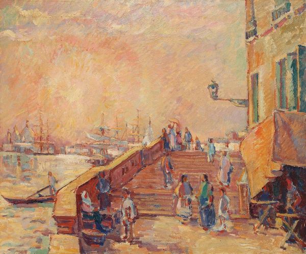 Paul Signac created this watercolor painting, "An Old Port of Marseille", using fluid brushstrokes and a vibrant yet diffuse palette. The scene shimmers with light, evoking a lively port atmosphere. Signac’s work here beautifully destabilizes the traditional landscape. The composition, while representational, is more concerned with capturing the essence of light and movement rather than precise detail. The reflections in the water are as substantial as the boats themselves, blurring the lines between object and reflection. Through his application of color and form, Signac captures not just the physical appearance of Marseille, but also its vibrant energy. The painting becomes a study in perception, challenging our understanding of space and representation. This piece invites us to see beyond the surface.