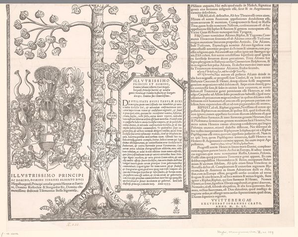 Editor: So, this intricate engraving is titled "Stamboom van het Habsburgse huis, blad twaalf," or "Family Tree of the House of Habsburg, Sheet Twelve," created sometime between 1533 and 1535 by Robert Péril. It’s overwhelmingly detailed—but in terms of tone, the image seems… celebratory? What jumps out to you when you look at this image? Curator: Indeed, the genealogical tree is rich with symbolic meaning. Notice how the artist uses the visual metaphor of a tree to represent lineage, but not a realistic tree; rather, we have symbolic leaves and carefully organized text. It isn't just a family record, but a deliberate construction of Habsburg identity and legitimacy. Consider, what emotional impact would these repeated portraits and heraldic devices have on viewers of the time? Editor: I can see how all the visual elements work together now to create that effect of enduring power and status. Are the Habsburgs the roots, maybe? And all the other names… branches? Curator: You're on the right track! The prominent figures, especially those within the central roundels, are clearly meant to be seen as pivotal to the dynasty. The choice of medium - print - also allowed for wide distribution. In effect, it’s propaganda! Think of the family tree less as objective fact, and more as carefully curated cultural memory. Do you notice any repeated images that tell us where their influence stretches to? Editor: Oh, you’re right, the repeated eagles are placed near those central roundels. Curator: Precisely. How does understanding the iconography affect your perception of the work? Editor: Well, it's shifted from just an ornate illustration to more of a statement—a bold declaration of heritage and power intended for a wide audience. I appreciate how even mundane details can carry deep symbolic significance! Curator: And how such symbols speak volumes across centuries! It really prompts you to consider, doesn't it, the intent and power of visual representation itself?