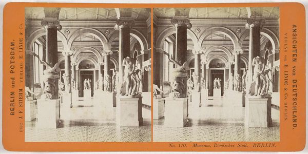 This stereoscopic photograph of the Farnese Bull in the Neues Museum, Berlin, was created by Johann Friedrich Stiehm. It’s not a traditional artwork, but a manufactured image, made in multiple using a camera and printing press. Photography in the 19th century involved a complex interplay of craft and chemistry. Light-sensitive emulsions, carefully prepared, captured images on glass plates, which were then printed onto paper. This particular example is a stereograph, designed to create an illusion of three-dimensionality when viewed through a special device. This lent a vivid sense of realism, a selling point for commercial photographers like Stiehm, who capitalized on the public's appetite for imagery of distant places and famous artworks. Consider the labor involved: from the photographers on site to the workers in the printing shop. These mass-produced images democratized access to art and culture, but also speak to the industrialization of image-making, and its intersection with tourism and cultural consumption. In looking at this object, we appreciate the material processes that shape our understanding of art.