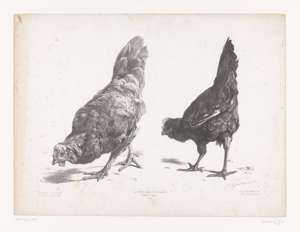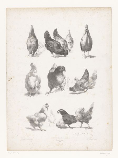 Editor: This is "Høns," or "Hens," a pencil drawing on paper by Carl Bloch, dating from 1882. It's a sketch, almost like a study of chickens in different poses. I’m struck by how simple it is, but it feels so carefully observed. What do you see in this piece? Curator: These chickens... They resonate with archetypal domesticity, wouldn’t you say? The hen as nurturer, provider. Bloch isn't just capturing their physical forms; he's tapping into centuries of cultural memory where the hen embodies sustenance and simplicity. Notice how each pose is distinct. Do you think this shows just the anatomy of chickens, or maybe more? Editor: I think it might be more than just the anatomy of a chicken. I can see your point about them being domestic. Each one is really brought to life! How interesting to apply the concept of archetypes to...poultry! Curator: Absolutely! It’s fascinating how seemingly mundane subjects can carry deep symbolic weight. Look at the shading – Bloch uses it not just for volume but also to imbue the birds with a certain presence, even dignity. They’re not simply farm animals; they are stand-ins for simpler life and times. There is, here, what you might consider a moment suspended, ready to emerge. Editor: So, looking beyond just what's depicted and into the 'why' it's depicted? Like how chickens as domestic symbols have permeated our visual culture through history, then Bloch adds to that conversation? Curator: Precisely! It is this continuity of symbols which adds layers of meaning and interpretation that spans generations, even into the present moment. What has the eye learned from its observations? We, in turn, also learn as the work, again and again, speaks to us. Editor: I never thought I could spend so much time considering chickens. I'm struck by the ways art can reveal so much about what humans consider meaningful. Thanks! Curator: Indeed. Art allows for the discovery of ourselves in the symbols all around us. It’s an act of recognition and an active mode for the development of thought.