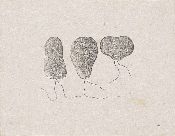 Curator: Fernand Léger's "Study Nuts," created in 1931, offers a fascinating lens through which to view the everyday. Executed with ink on paper, the drawing typifies Léger's cubist style. Editor: Wow, a lone nut! I mean, it kind of makes you wonder, doesn’t it? All that energy focused on one single walnut. It almost feels… monumental. And I love the cross-hatching. Curator: The choice of a humble subject like a nut reveals a deliberate democratization of art, challenging traditional hierarchies of subject matter. Léger found beauty and significance in the mundane, echoing similar approaches within the broader context of early 20th-century avant-garde movements. Editor: Exactly! It's saying, "Look! Even a nut can be epic!" It feels like a brain in its protective case… You know, it makes you ponder nature's incredible packaging. So compact and efficient. The slightly unsettling resemblance of the kernels in the nutshell and those inside our brains emphasizes the idea that the structure of nature are echoes of human anatomy. Curator: Indeed. We can think of the walnut as a symbol of hidden potential, of contained energy and resources waiting to be unlocked—or maybe, to build on your analogy, it could relate to the commodification of knowledge. Editor: Oh, I like that! A commodified brain! The possibilities feel nutty indeed. But I love how the drawing itself emphasizes form, almost dissecting it before it was cool. Curator: Precisely, this dissection and reformulation is key to understanding Léger's engagement with the cubist principles of fragmentation and reassembly. The artist takes the familiar and renders it newly visible, urging the viewer to consider what we often overlook. And in a time between wars when European people found it difficult to make a living, every single item could provide value and hope, even a nutshell Editor: What’s brilliant, and a bit cheeky, is taking something so small, so easily dismissed, and making it… important. Makes you realize you should look closer. Curator: It is indeed an invitation to a more considered perception. The simplicity of the subject becomes a prompt for deeper reflection on both artistic intention and social context. Editor: Yeah, it's a reminder that there’s more than meets the eye, even in a humble nut.