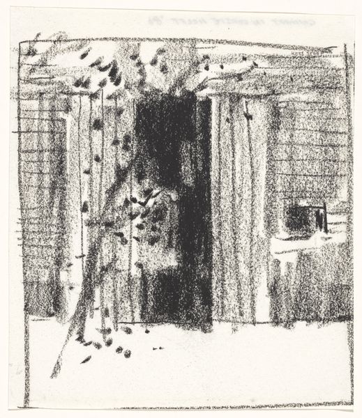 Editor: This ink drawing, “Binnenplaats met houten hekken en tuintjes”—"Courtyard with wooden fences and gardens"—by Carel Adolph Lion Cachet, probably made sometime between 1874 and 1945, presents this almost bird’s eye view of what looks like a maze of backyards. It’s quite detailed, but it gives me a slightly unsettling feeling, almost like an invasion of privacy. What do you see when you look at it? Curator: You know, that feeling of unease is something I also sensed. It's the strange intimacy created by that elevated perspective – peering into these private spaces, these little contained worlds. The fences are interesting to me. It's such a rigid geometry defining these little green spaces. Fences are fascinating boundaries. What do they protect? What do they hide? Editor: I guess they separate neighbors. Are these backyards typical of the Netherlands during that period? Curator: To some extent, yes. These smaller garden plots became common in urban areas. Remember, even amidst industrialization, the Dutch maintained a deep connection to the land, to cultivating something, even on a miniature scale. There’s something lovely about that resilience. What about you? Do you have a garden? Editor: Not currently, sadly. Just a few potted plants. It's made me consider how fences delineate more than just space; they're social structures made visible. Curator: Precisely! Cachet, through what appears as this fairly straightforward city scene, seems to make us question how we define the concept of living "apart together." And the technique… the confident strokes of ink defining complex arrangements. It’s beautifully unsettling, don’t you think? Editor: Definitely. The details made the ordinary strange in my eyes. Now it all seems more symbolic than when I first saw it.