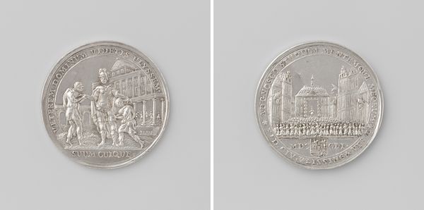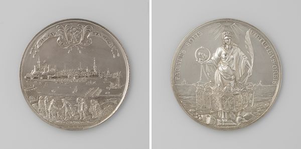 This silver medal, crafted by Reynier Arondeaux, depicts William III’s landing at Torbay. Note the prominent figures of William, sword in hand, and Britannia, symbolizing England. Consider the motif of Britannia, seen here offering William her hand. This gesture echoes classical antiquity, evoking images of emperors greeted by personifications of conquered lands, signaling legitimacy and divine approval. Yet, Britannia, an allegorical figure, also has roots that predate even the Roman Empire. The image also portrays William as a liberator and rightful ruler. This imagery connects William to a lineage of historical figures who have similarly appropriated gestures and symbols to affirm their authority. Just as in ancient times, these symbols resurface, charged with the weight of history.