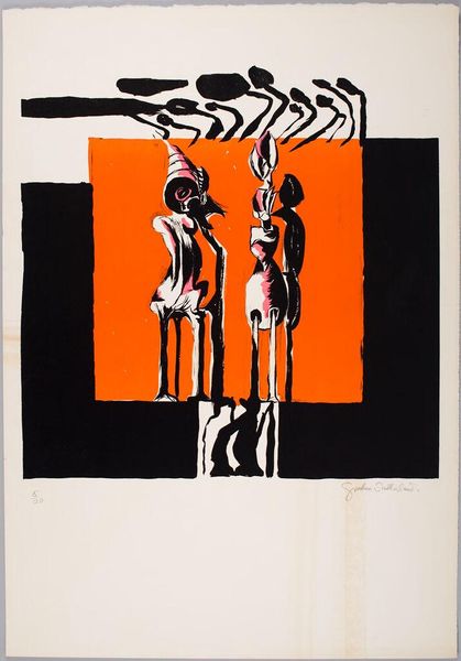 Editor: This is "V" by Allen Jones. I see a fragmented female form. There's something both powerful and unsettling about how the figure is presented. What symbols do you think Jones is using here? Curator: The fragmentation is key. Jones uses it to disrupt traditional representations of the female figure. Notice the glossy black panels and the high heels; they evoke fetishistic imagery, recalling a history of objectification. But what of the planes that bisect her? Editor: It’s like he is trapping her or dissecting her. Curator: Perhaps. Consider how the bold lines and flat planes echo the visual language of advertising. This challenges us to question the cultural narratives that shape our perception of women. Does this shift your understanding? Editor: Definitely, seeing how these symbols interact gives me a lot more to think about. Curator: Indeed, the artwork encourages us to investigate the cultural memory embedded within these images and their lasting impact.