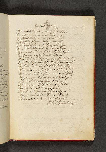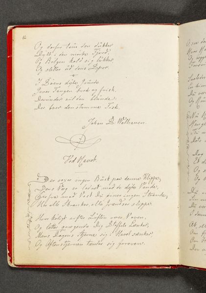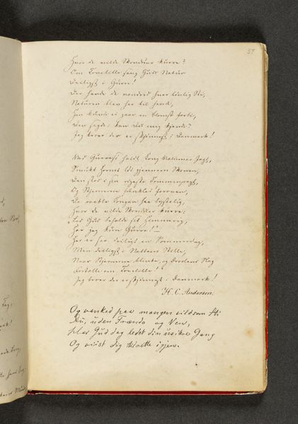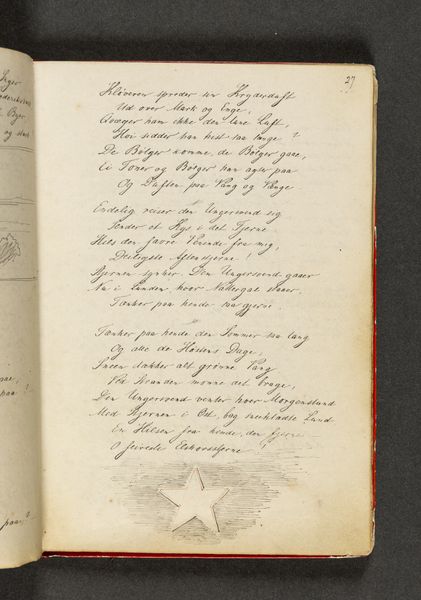 This page comes from a sketchbook made by Johan Thomas Lundbye, a Danish painter, in the 1840s. Lundbye was part of a generation of artists who sought to define a distinctly Danish national identity through their art. The Danish Golden Age, as it was known, was a period of intense nationalism, fuelled by political upheaval and a desire to assert cultural independence. Lundbye's sketches and writings often celebrated the Danish landscape, history, and folklore. This particular page features handwritten text that speaks to this cultural moment. The words evoke a romantic vision of Denmark, steeped in myth and legend. Lundbye and his peers drew inspiration from folklore and ancient sagas to create a sense of shared history and cultural heritage. These artistic choices reflect the broader social and political currents of the time. Scholars analyze the literature, art, and music of this era to understand the complex interplay between national identity and artistic expression.