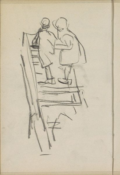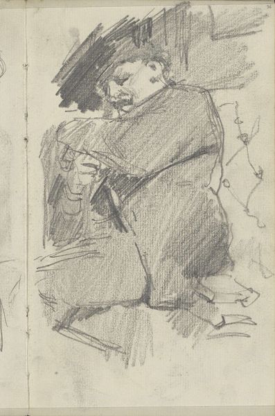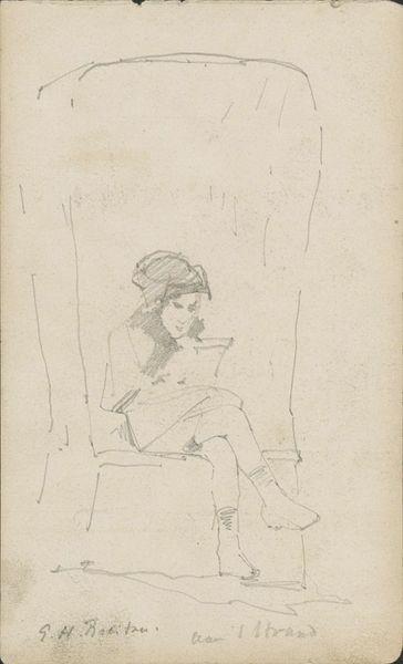 Curator: Let's take a look at this drawing by Jan Willem van Borselen titled, "Two Children Sitting on the Grass by a Fence." It was likely made between 1868 and 1887 and is rendered in pencil on paper. You can find it here at the Rijksmuseum. Editor: It’s charming, almost fragile. The scene is intimate—the kind of quiet moment you might stumble upon. There’s a melancholic feeling that resonates, like looking into a faded memory. Curator: It's interesting you say that. Van Borselen's choice of pencil as a medium suggests a study, perhaps preparatory work for a larger painting. We have to remember the economics of art production—materials weren't cheap! The use of pencil allowed for accessibility, speed, and revisability. Editor: It definitely feels like a snapshot, a fleeting observation captured swiftly. Look how loosely he sketches the background, versus the more defined shapes of the children’s faces and clothes. I feel their closeness without elaborate details. It speaks volumes about their relationship, maybe siblings or close friends. Curator: Right, and we should note the potential impact of photographic practices. While seemingly traditional in its subject, such work reflected anxieties of painting amidst the rise of accessible photography. Quick sketches could also have provided accurate depictions more cost-effectively to certain demographics. It's a compelling mix of tradition and technological change. Editor: Yes, definitely. There is an honesty and lack of pretense in these children; maybe it's because the sketchy nature makes it feel somehow undone or uncontrived. As a result it transcends simply "representing" children and feels emotionally charged. Curator: And ultimately, isn't it compelling how a humble drawing can generate so many complex questions about material accessibility and art history even today? Editor: Indeed. It really highlights the tension between technique, material reality, and its capacity to elicit such potent and tender feelings.