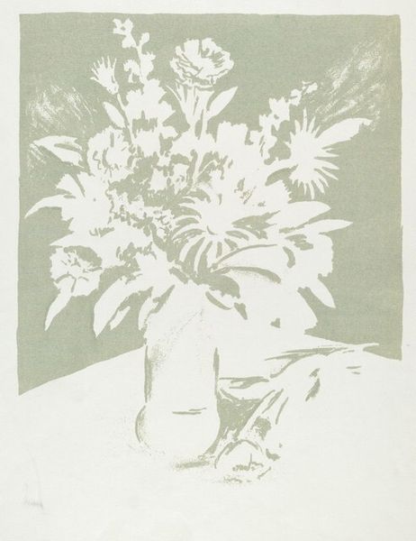 Editor: So this is *Orchideeën*, or Orchids, a woodcut print made sometime between 1895 and 1935 by Mathieu Lauweriks. I’m immediately struck by the stark contrast and the almost brutal simplicity of the shapes. It’s quite moody. What do you make of it? Curator: Well, it sings to me of quiet contemplation. Lauweriks pares the orchids down to their essence. They're not realistically rendered, of course, yet the design whispers secrets, doesn't it? Those almost harsh, geometric forms—do they not, in a way, reflect the rigid, utopian ideals bubbling in the early 20th century? What sort of feeling do *you* get from the flatness of the background? Editor: Hmmm, rigid ideals. I see what you mean. And that flatness... it’s almost like the orchids are floating, suspended in a void. Is that intentional, do you think? Or just a consequence of the woodcut technique? Curator: A little of both, perhaps? The woodcut forces simplification, but I sense intention too. This was the era of the Gesamtkunstwerk - the total work of art - where every element contributed to a unified vision, and artists were experimenting with conveying emotions and feelings in minimal, often abstract forms. Think about those little dragonfly looking forms, or at least, that's what I see, what do you see? Editor: Now that you point them out, yeah, I see little dragonflies darting around. The whole thing feels like a moment captured, but one removed from reality, somehow. I never thought about abstraction connecting with rigidity. Curator: Art can be so surprising like that. That’s the beauty of looking closely! Don't you agree? There are these secret threads we get to unravel.