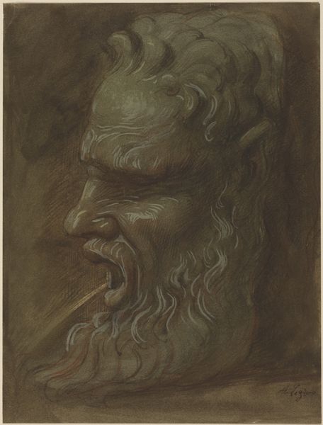 Editor: So, here we have "Skægget mandshoved i profil mod venstre"—or "Bearded Man's Head in Profile to the Left"—a 16th-century ink drawing by Giuseppe Ribera. It has such a solemn feel, almost mournful. What do you see in this piece? Curator: I see echoes of the past speaking through this image. The subject's downward gaze, framed by that cascading beard, feels weighted with cultural memory. Consider how the archetype of the wise, bearded man has been used throughout history—as a sage, a prophet, a representation of time itself. Editor: That makes sense, given its age. How much is known about its origins and function? Curator: As a study, it speaks to Mannerism's interest in capturing complex psychological states and idealized forms. But more broadly, notice the almost circular composition around the head, it creates an iconic presence. What feelings does that generate for you? Editor: It encloses him, makes him almost internal. Maybe he’s weighed down by wisdom and introspection, which links with your point about memory. Curator: Exactly. The Renaissance revived many classical icons, but through Mannerism there's also new emotional introspection. This single image synthesizes both strands. We see echoes and cultural memory intersecting. Editor: So it's like a vessel carrying different cultural ideas and emotions about age and wisdom. Curator: Precisely. This image encourages us to contemplate the endurance of visual symbols and the intricate ways in which they shape our perception across time. Editor: I didn’t consider it in relation to its historical use of visual memory and continuity. That changes my perspective. Thanks for helping unpack all the possible symbolic meanings! Curator: It's been a pleasure, revealing these complex patterns through time!