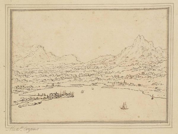 Johannes Tavenraat sketched this landscape with mountains near a lake in pencil, capturing the allure of nature. Dominating the scene is a structure perched atop a hill, its silhouette reminiscent of a fortress or perhaps a monastery—symbols of protection and spiritual refuge. This visual echo resonates with ancient motifs found across cultures. We see similar fortified settlements in classical landscapes, embodying a sense of security and dominion over the natural world. Consider how such images have been used, from medieval tapestries to Renaissance paintings, to convey themes of power, control, and the human desire for permanence. This fortress-like structure can trigger deep-seated psychological responses related to safety and control. The interplay between the natural and the built environment speaks to an ongoing dialogue between humanity and nature. This composition evokes emotions tied to our relationship with the land: a longing for stability, a respect for nature's grandeur, and the eternal cycle of building, decay, and renewal. The symbols it holds have transformed and re-emerged throughout history, revealing our ever-changing relationship with our surroundings.