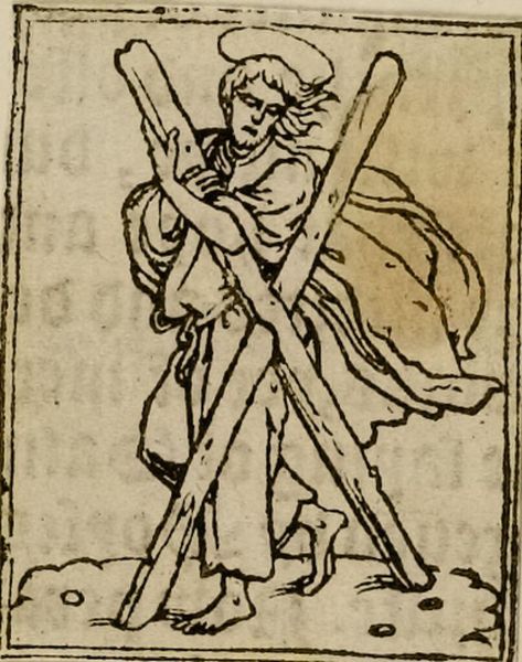 Editor: This woodcut, an illustration from "Voragine, Leben der Heiligen," printed in 1475, depicts a saint's martyrdom. It feels stark, almost brutal, in its simplicity. How do you read the symbolism of this piece, especially considering its method of production? Curator: Let’s consider the woodcut itself. The very act of carving the block – the labor involved, the accessibility of the medium – democratizes the image. This saint, kneeling, about to be struck, is a product of a specific workshop, made for mass consumption. Does that shift your understanding of its power? Editor: It does! Thinking about the production process makes it feel less like a unique, venerated object and more like a widely disseminated message, almost like propaganda. Curator: Exactly. And how does that change the meaning of his suffering? Editor: It reframes it! It becomes less about individual piety and more about the Church's broader influence. Thanks, that's fascinating! Curator: Indeed. Seeing art through the lens of its material creation offers new insights.