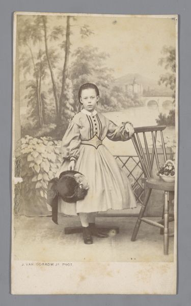 This is a vintage photograph, presumably from the late 19th or early 20th century, by C. Malfaity, depicting an unknown girl with a hat. The sepia tones lend an antique, almost ethereal quality, softening the textures and forms within the composition. The girl’s patterned dress and elaborate hat introduce a complex interplay of lines and shapes. The photographer uses a symmetrical composition, positioning the girl centrally, which draws our eye directly to her face. The stark contrast between the detailed foreground and the blurred background creates a sense of depth. This formal structure underscores a particular vision of representation: the meticulous arrangement of elements serves to capture and perhaps idealize the subject’s image within a specific cultural context. It prompts us to question the cultural codes embedded within this image: What does it mean to present a young girl in such a formal, almost staged manner? This photograph becomes a rich site for interpreting not only the individual’s image but also the broader societal values of its time.