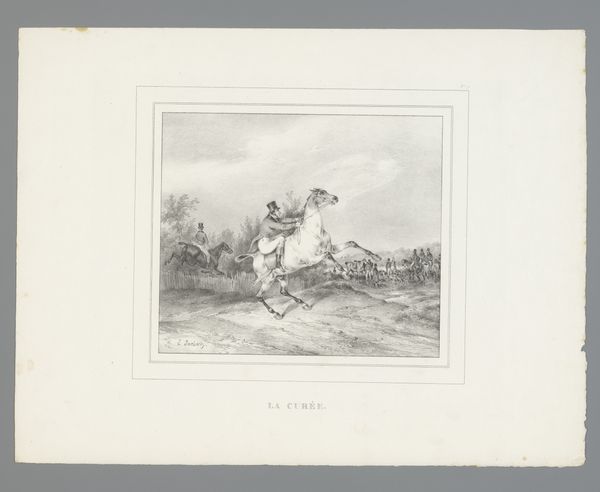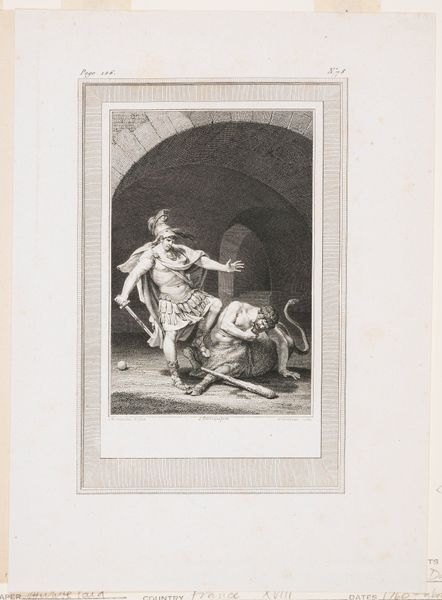 Editor: This is Ferdinand Gaillard's print, "Raphael's Saint George," housed right here at Harvard. It’s so detailed! The knight's stance and the dragon’s contorted body--what symbols or cultural memories resonate for you in this image? Curator: Well, St. George slaying the dragon is a powerful symbol of good overcoming evil, deeply rooted in Christian iconography. The dragon itself represents chaos and paganism. Notice how George isn’t just defeating a monster, he’s restoring order. Editor: Order, yes, I see that now! So it's not just a literal battle. Curator: Exactly. It's a visual representation of spiritual triumph, echoing across centuries. What feelings does that evoke for you? Editor: Thinking about it that way, I see more than just a knight; I see hope and resilience. Curator: Precisely! Symbols evolve, but their core meaning often persists, connecting us to shared cultural narratives.