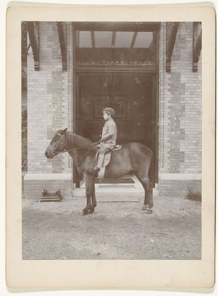 Curator: This photograph from 1924 captures Klaas Kleiterp, a young boy, perched on a horse being held by a Javanese man in Batoedjadjar. Editor: It's striking, isn’t it? Something about that kid's intense little stare cuts right through the dust of history. Makes you wonder what he's thinking. Curator: The photograph is attributed to Klaas (I) Kleiterp, and falls within the realm of genre-painting—or at least as photography can interpret such traditional painterly conventions. The staging is quite formal, almost like a painted portrait, yet the candid nature adds an intimate quality. It certainly invites us to unpack the complex social dynamic embedded within. Editor: Social dynamic... yeah, that's one way of putting it. The kid looks so proper, stiff almost, and the Javanese man is just…there, holding the reins. You feel the imbalance, the colonial shadow hanging heavy, right? Even with the idyllic, verdant background, there is something not idyllic at all. Curator: Precisely. It's crucial to understand these visual records within the historical power structures of the time. Photographs like this were often used to document, reinforce, and circulate specific ideologies of racial and social hierarchy within colonial contexts. Editor: Totally. It’s more than just a snapshot, it's a symbol—intentional or not—of an unequal relationship, frozen in time. Curator: The lack of visible emotion or engagement between the two further accentuates the disparity. The photograph as document reveals perhaps far more than it intends, reflecting unspoken attitudes, the mundane enactment of power in everyday colonial life. Editor: The power of images, right? It’s a quiet photo, but there’s a scream beneath the surface, if you really look. This piece is unsettling in that sense, deeply affecting even after almost a century. Curator: Agreed. The piece serves as a valuable record, prompting crucial questions and considerations. Editor: Definitely makes you rethink what you thought you knew.