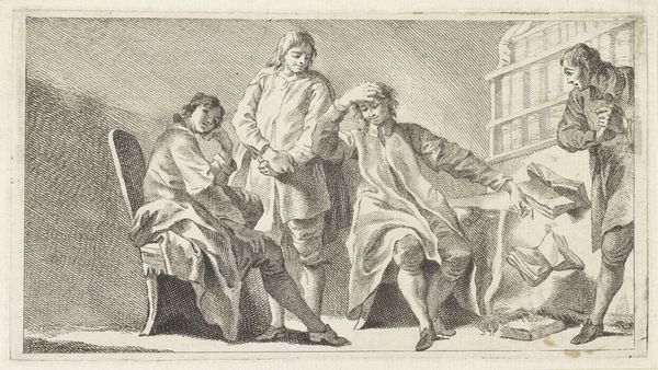 Curator: This work is attributed to Guercino, an Italian Baroque artist. It's a charcoal drawing titled "Saint Joseph Seen with his Flowering Staff, which is Held by the Christ Child," estimated to have been created sometime between 1591 and 1666. Editor: My immediate impression is one of sketched intimacy, softened by the sepia tones. There is a sense of tentative yet assured creation, revealing human touch through these humble materials. Curator: Indeed, the composition guides our eye through deliberate arrangements of light and shadow. Consider the stark lines defining the contours of Saint Joseph versus the gentle curves illustrating the Christ Child. The flowering staff also carries rich symbolism related to divine selection and fatherhood. Editor: Precisely, and it's fascinating to ponder how the materials influenced Guercino's vision. Charcoal offers immediacy—mistakes become learning tools rather than failures, and corrections show a thinking hand. This quick method aligns with the era’s demand for efficiency in religious art production. It wasn’t precious; it served purpose. Curator: While I recognize charcoal's practical advantages, I remain captivated by the artist’s careful management of space and form. Notice how both figures inhabit the composition not just physically, but psychologically; each possesses an independent gaze and purpose within shared dimensions. Editor: But shouldn’t we consider who was obtaining this art? This was for private devotional consumption for families or high church officials, not some public expression for "the people." These types of sketches offer incredible windows into both economic frameworks of the time and devotional object production! Curator: Perhaps…but viewing it purely as the by-product of economic needs, however, risks undermining Guercino’s ability as a maker. Surely there's a complex relationship here between material constraints and aesthetic ambition. Editor: Absolutely; however, examining art this way makes room to look at other skilled artisans of the period also using humble means, inviting reflection of the social labor surrounding creative production, not merely a celebration of individual ingenuity. Curator: I see your point. Understanding the cultural context of making allows for a more thoughtful reading that appreciates skill and historical understanding. Editor: And that charcoal—cheap but essential, transforms paper and pigment. It reveals so much.