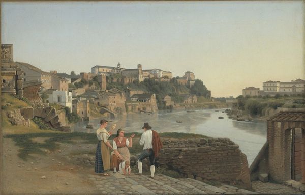 Christoffer Wilhelm Eckersberg painted "A View across the Tiber from Trastevere towards Castel S. Angelo" to show us Rome. The composition is dominated by the imposing Castel Sant'Angelo. It was originally Hadrian’s mausoleum, now crowned with a statue of the Archangel Michael, a symbol of divine protection against pestilence. The statue on top, initially a pagan monument, reveals the city's layers, reflecting its transitions and collective memory. This transformative process echoes motifs found in ancient Near Eastern art, where symbols of power were adapted by successive rulers. Note the figures drawing water in the foreground, a timeless scene, yet one juxtaposed against the backdrop of this monumentality. The image embodies the cyclical nature of history and the constant negotiation between past and present. The act of drawing water, repeated through centuries, stands in stark contrast to the imposing architecture, reminding us of the transient nature of human existence. It is this tension that resonates deeply, engaging our subconscious awareness of time and change.