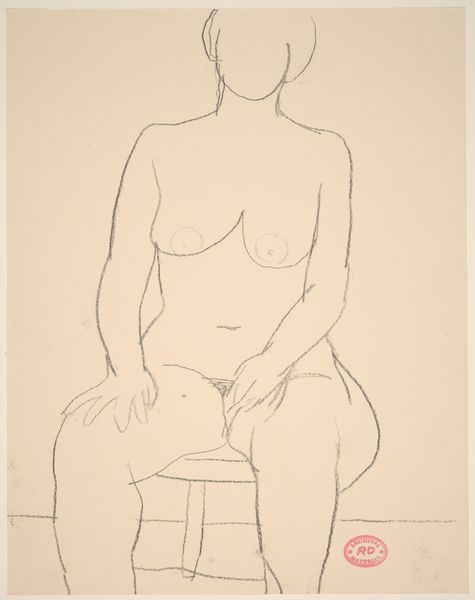 Editor: So, here we have "Untitled," a nude drawing by Richard Diebenkorn, created sometime between 1955 and 1967. The sketchiness gives it this very raw, vulnerable feel, like we’re catching a glimpse of something private. What’s your take on it? Curator: You know, I feel that vulnerability too. It's like Diebenkorn is letting us see the process, not just the perfected image. I imagine him wrestling with the lines, trying to capture not just the form, but the feeling of the model's presence. The gaze, though… It’s unnerving, isn't it? It feels almost confrontational, like she’s challenging the act of being observed. Or maybe it's just my own projection onto her stillness? What do you think that is? Editor: I didn’t see the confrontational aspect at first. Maybe it's that her gaze lacks… softness? It's definitely intense, and makes the piece feel a lot more modern. Curator: Precisely! It breaks away from that historical tradition of the passive female nude. It’s less about idealized beauty, more about… raw humanity, wouldn’t you say? The sketchiness further emphasizes this authenticity; a deliberate choice of how we percieve his work. Editor: Absolutely! It's almost like he’s stripping away all the layers of artifice to show us something real. It seems Diebenkorn asks, “what are we looking at, and why?” Curator: A good point, as it reframes our perspectives of nudes within portraiture as it focuses on how one's inner feelings shape their public presence. Editor: Definitely changed how I look at figure drawings, and its raw power. Curator: Indeed, an intimate viewing experience through a dialogue of line.