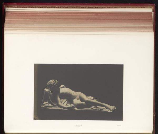 Editor: Here we have a photograph of Frederick Thrupp’s "Sculpture of Arethusa," showcased at the Great Exhibition in London, 1851. It feels very classical in its composure, yet somewhat melancholic. What captures your attention most about this piece? Curator: Ah, Arethusa. She's reclining, almost exhausted, isn't she? But not without a certain… sensuality, I think. Do you know her myth? She was a nymph, chased by the river god Alpheus. That pose, the way she shields her head – is it rest, or is it lingering fear? I wonder if Thrupp wanted to capture that ambiguity. What do you make of the realism in this classical form? It's an interesting tension, no? Editor: Yes! The realism almost makes the scene more… human. Less like a distant myth, and more like a tangible moment of vulnerability. How does that blend of styles impact the way it was received at the Great Exhibition? Curator: Good question. Think about the time. Victorian England, obsessed with both morality and grand narratives. Here's this nude, classically posed, yet strikingly real. Was it Titillation? Inspiration? Perhaps a little of both. The Great Exhibition was about showcasing innovation, but also, let's be honest, Empire and its aspirations of grandeur, and often looking back at Greek and Roman models. She kind of perfectly embodies that tension between the idealized past and the modern desire for authenticity. Editor: That’s fascinating; a negotiation between virtue and... well, human form. It provides more context to that interesting tension that you brought up earlier. I had not considered how audiences in that moment would be conflicted with how to receive it! Curator: Indeed, she's a marble puzzle! One frozen, fascinating moment with ripples expanding far beyond its initial splash. Editor: Well, I certainly have a new appreciation for Arethusa's complexities, and Thrupp's, after digging into her story.