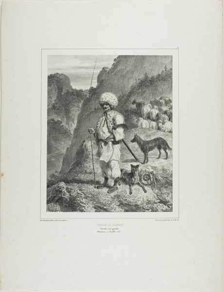 Editor: This is "Soldier or Pirate at Ruin" by Bernardus Theodorus van Loo, made in 1844. It's an ink drawing. I'm struck by how forlorn the figure looks against the backdrop of decay. What do you see in this piece? Curator: I see a powerful commentary on the societal costs of conflict. Look at the central figure: is he a soldier or a pirate, and does it truly matter? Both exist outside the bounds of conventional society, often rendered invisible or disposable. Van Loo created this drawing in 1844. How might anxieties about empire and national identity inform this portrayal? Editor: That’s interesting. I hadn't considered it as a critique of empire. I was more focused on the Romantic aesthetic of ruins and the lone figure. Curator: Precisely! Romanticism wasn't merely about aesthetics; it also engaged with power structures. The ruin here could symbolize the decay of societal systems and their effects on individuals marginalized by war and conquest. The question then becomes, who is permitted to mourn these losses, and whose narratives are prioritized in history? Do you think his dress alludes to one identity more than the other? Editor: I see what you mean. The shabbiness and disarray complicate any simple identification. Maybe it’s about the blurring of lines. Curator: Exactly. By depicting this ambiguity, Van Loo might be highlighting the interchangeability of these roles within oppressive systems. It compels us to examine who profits and who suffers when societies embrace violence as policy. Editor: I learned so much about reading artworks with a deeper, critical awareness. Curator: And I think this artwork reminds us how crucial it is to investigate both visible and obscured voices when reflecting on history.