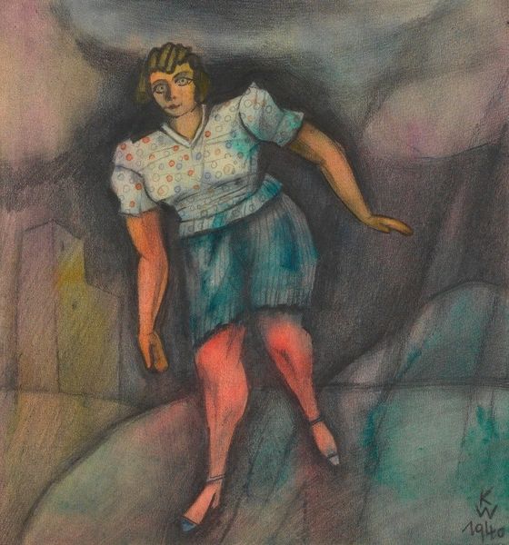 Karl Wiener made 'Die Schwangere' with watercolor in 1940, and it feels like a dance between control and letting go. The blues and purples in the sky seem to bleed into one another, giving the whole background a kind of stormy, emotional feel. There’s a tension here. You can see it in the way the pink of the dress pops against that moody sky, how it’s not just pink, but has all these different shades, like the color is breathing. Wiener’s not trying to hide the process; you can see the layering of the watercolors, the way the colors mix on the page. Look closely at the dress; it's got hard edges where the pigment has bled outwards. This piece reminds me a little of Paula Modersohn-Becker, another artist who wasn’t afraid to show the raw, vulnerable side of life. It’s like they’re both part of this ongoing conversation about what it means to be human, to feel, and to make art that reflects that. There's a sort of quiet strength that comes from embracing uncertainty, and I think that's what makes this piece so powerful.