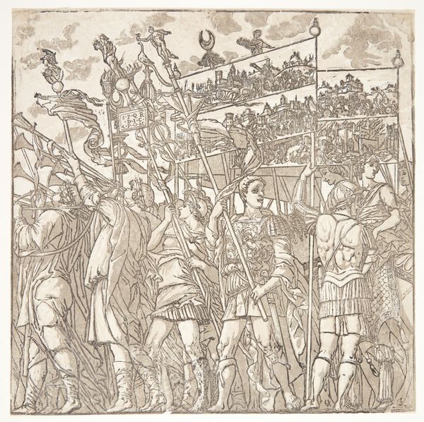 Andrea Andreani made this woodcut, "The Triumph of Julius Caesar," probably in Italy, sometime around 1600. Woodcuts like this one played a crucial role in shaping public perceptions of history and power. The image evokes the grandeur of ancient Rome through its detailed depiction of a triumphal procession, but it also reflects the political and cultural climate of the artist’s time. Italy, during this time, was composed of city-states that often used art to legitimize their authority by connecting themselves to the legacy of Rome. By studying the visual language and symbols employed in this artwork, we can understand the image as a visual tool with a political role. Research into the historical context and cultural associations of the time help us to understand better how these images worked as forms of visual communication. It also illustrates the social conditions that shape artistic production.
