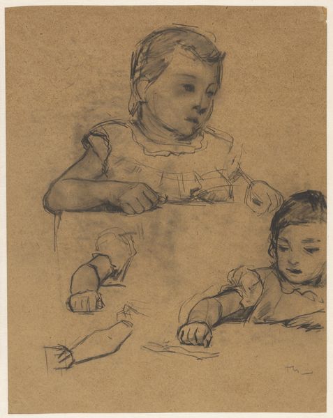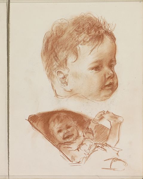Editor: So, this is Theodore Roussel’s 1890 pencil drawing, or print, called "Portrait of Margery Chambers, Aged Ten Weeks." It's a sketch really. Looking at it, I immediately feel a sense of delicate intimacy. It's so fleeting, like capturing a dream. What do you see in this piece that perhaps I'm missing? Curator: Oh, that dream-like quality resonates deeply! For me, it’s about those in-between moments, the transient blurs of existence we usually miss, isn’t it? Notice how Roussel isn't just depicting a baby, but rather an ethereal memory of babyhood. Consider that ghostly hand hovering above…protection, perhaps, or merely presence? And those lines, so faint, almost hesitant – do they suggest uncertainty, or just the soft, vulnerable reality of new life? Editor: Presence, I like that. I hadn’t thought about it as presence rather than direct interaction. The sketchiness, though, it almost feels unfinished, doesn't it? Curator: Unfinished? Maybe, but isn’t life itself always a work in progress? Perhaps Roussel captured not a perfect portrait, but a pure, unfiltered glimpse of nascent being. It’s a poignant snapshot of potential, a reminder that every beginning, even the smallest, contains infinite possibility. And doesn't the soft focus draw us into considering that vulnerability in a more potent way? Editor: That's beautiful. It shifts my whole perspective on it. So much captured with such sparse lines. Curator: Indeed! It leaves me pondering all the unwritten stories, the paths not yet taken, and the fragile beauty inherent in every fleeting moment. Doesn't it you? Editor: It definitely does, especially the 'paths not yet taken' bit. I'm seeing it now as less of an artful, literal rendition, and more like an emotionally guided map of human experience. Curator: Exactly! And it only took 2 minutes.