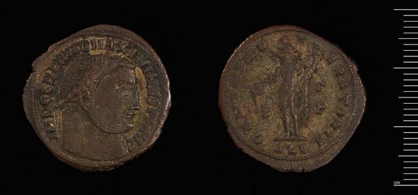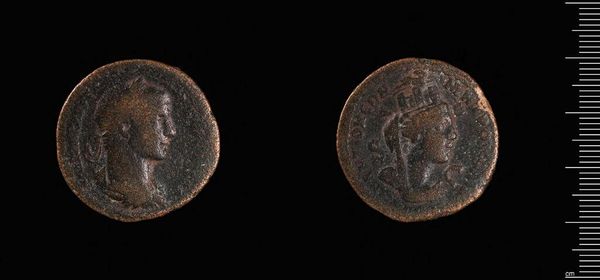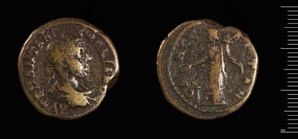 Editor: Here we have a coin, "Coin of Thessalonike under the Emperor Gordian III". It's a small, bronze object, worn with age. What sort of symbolic weight would this have carried? Curator: Coins are fascinating! Beyond simple currency, they functioned as propaganda, instantly recognizable and widely circulated. What do you see depicted? Editor: There's an image of the Emperor on one side. The other side seems to have a figure standing on a boat. Curator: Indeed! The Emperor's portrait established his authority, while the ship likely symbolizes Thessalonike's vital port and maritime power. Consider how these symbols reinforced cultural identity and loyalty to the Roman Empire. What does it tell us about their values? Editor: It shows how intertwined power, trade, and identity were. I hadn't considered how much meaning a single coin could hold! Curator: Exactly! Coins offer a tangible link to the past, echoing the values and beliefs of a bygone era.