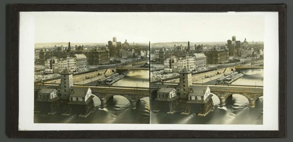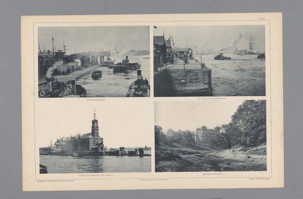 Editor: This is "Four Views of Hamburg, Depicting the Brooksbrücke, Hopfensack and Messberg, the Wandrahmsbrücke and the Baumwall" by Wilhelm Dreesen, made around 1894. It looks like an albumen print of Hamburg's cityscape, very crisp in its details. I'm struck by the formality, almost like a visual record. What do you make of it? Curator: I see this less as a personal artistic expression, and more as a document produced within specific historical and technological constraints. Think about how photographs of this era functioned within a burgeoning tourist industry. These are, essentially, postcards for the aspirational traveler. Editor: Postcards, interesting! So, like carefully curated views designed to impress? Curator: Precisely. Note the composition: Each scene features prominent architectural landmarks framed to present an orderly, prosperous city. Consider what social class would have the time, or means, to view this work? Editor: A rising merchant class, I'd guess, keen to demonstrate the city’s… legitimacy? Curator: Exactly. The image, in a way, performs Hamburg. What aspects of city life *aren’t* shown? Are there industrial districts, perhaps? Or less-affluent neighborhoods? This selection of views crafts a very specific narrative. These visuals reinforced civic pride and signaled Hamburg’s importance in international trade. Editor: It makes you wonder what was intentionally left *out* of the frame to maintain that image of prosperity and order! Thanks. I will never see tourist photos the same way! Curator: Indeed! Analyzing art in its historical and social context reveals layers of meaning that go beyond mere aesthetics. We have to understand *whose* perspective is being privileged.