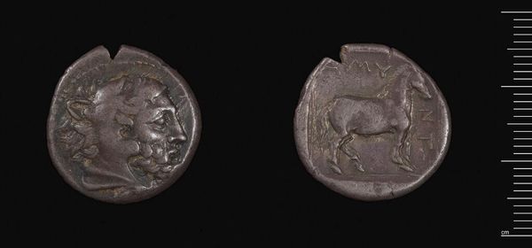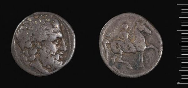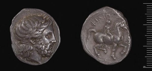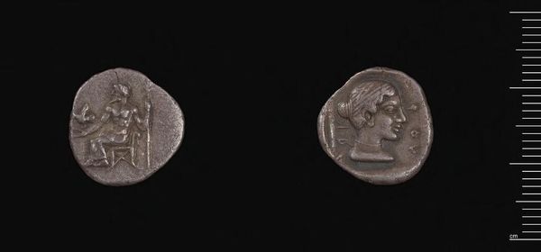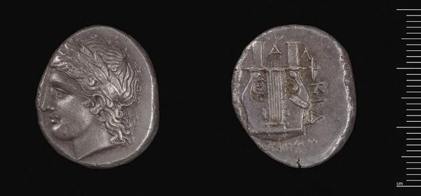 Editor: This is a silver Corinthian Stater, or Attic Didrachm, of Agathokles, Tyrant of Syracuse. It's incredible to think of the stories this coin could tell. What does this coin represent for you? Curator: This coin is more than just currency; it's a powerful statement of identity and authority. Agathokles, a self-made ruler, used coinage to legitimize his power. The imagery, likely Athena and Pegasus, connects him to established narratives of power. How does it make you think about who gets to write history? Editor: That's a great question! I see now that even something as small as a coin could be a propaganda tool. Curator: Exactly. Consider how even today, symbols and images are deployed to shape narratives and reinforce ideologies. It’s a potent reminder that art, even in its most utilitarian forms, is never neutral. Editor: I never thought of it that way before. Thanks for opening my eyes. Curator: My pleasure. It is important to examine the biases present in historical depictions of power.