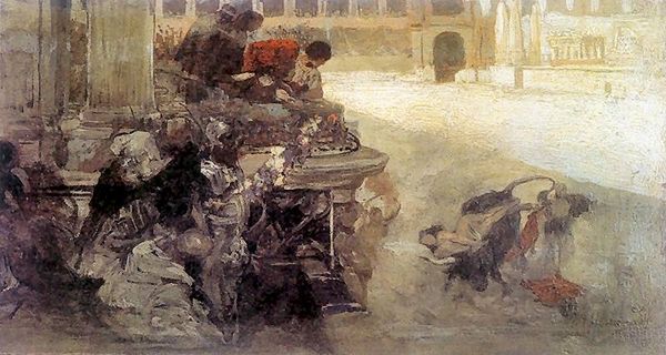 Editor: This is "Milan" by Konstantin Korovin, an oil painting from 1888. It feels very active and bustling; I get a sense of a busy street, but it's also kind of blurry and dreamlike. How do you interpret this work? Curator: For me, this piece exists at a fascinating intersection of rapid industrialization and the rise of Impressionism. Think about the social upheaval of the late 19th century, the mass migration to cities, and the changing role of women in public spaces. What feelings do those impressionistic brushstrokes evoke when set against this urban backdrop? Editor: I see what you mean. There's this frenetic energy, like the city itself is vibrating, but it almost feels like the people are being swallowed up by it. Were there specific political events at the time that might be influencing this? Curator: Absolutely. Italy was still relatively young as a unified nation, and Milan was becoming a major industrial and economic hub. This rapid growth created wealth, but also significant disparities. Do you see how Korovin obscures individual faces, turning people into part of the urban fabric itself? It challenges romantic notions of progress and modernity. Editor: I hadn't thought about it that way, but I see that now. It's not a celebration; it's more of an observation, almost a warning. Are the blurred faces part of a social commentary, perhaps reflecting a loss of individuality in a burgeoning city? Curator: Precisely. Consider how gender and class play into the social tapestry. Who has access to this burgeoning economic success, and at whose expense? If this artwork were speaking, who would it speak for? Editor: This gives me a lot to think about! Seeing it just as an impressionistic painting of a city misses so much of the story. I appreciate understanding the context now. Curator: And by understanding its place, we find that this seemingly simple city scene raises critical questions about power, identity, and the cost of progress – issues that still resonate profoundly today.