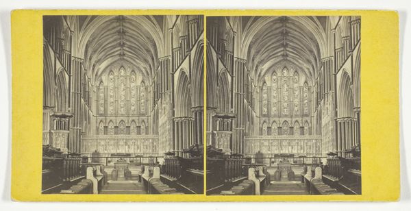 Editor: We’re looking at Archibald Burns' "Glasgow Cathedral - The Knave" from 1867, currently held at the Art Institute of Chicago. It's a photograph capturing the interior of the cathedral, and what strikes me first is the sheer verticality of it all and this kind of looming majesty. What captures your attention in this image? Curator: You know, it's funny, my first thought wasn’t about height at all. It's that hazy light. Look at the way the photographer coaxes light out of what must have been, even in 1867, a pretty murky space! You know, for all we bang on about technological advancement, there's a certain magic, a dreamy quality, to those early photographic processes. I imagine Burns, shrouded in dark cloths, holding his breath, willing the image to appear! And there’s that sense of captured time as well. This quiet moment in the bustle of Glasgow's history… did Burns set out to capture not just light, but silence, too? Editor: Silence… I like that. The lack of people really emphasizes that, doesn't it? And you're right, the light does soften the rigidity of the architecture. Curator: It absolutely does. And it makes you wonder, doesn’t it, about the Scotland of that time, so entrenched in industry, yet holding onto this profound sense of the medieval. This almost romantic notion, captured so simply by Burns. Almost a paradox. Editor: A paradox made visual, that’s a cool way to put it! I definitely have a better appreciation for how it blends different periods now. Curator: Exactly! It makes you consider our own time. What paradoxes are we leaving behind for future observers, I wonder? Food for thought, isn't it?