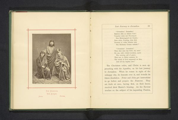 Editor: This is a reproduction of Jan Gossaert’s “The Four Marys at the Tomb of Christ,” a lithograph dating to before 1877. The photographic print makes me think about how grief is performed. What can you tell me about this piece? Curator: Looking at the material itself is fascinating. The shift from paint to lithograph introduces a critical change in the means of production. This reproduction democratizes access to the image, detaching it from its original context of elite consumption. Editor: So the medium influences how we interpret it? Curator: Precisely. A lithograph created through photography invites us to consider the labor involved, the accessibility afforded to the masses. Was this photolithograph produced independently, or perhaps commissioned for a particular purpose? And for whom? Such reproductive technologies, cheap and reproducible, change an artwork’s fundamental value within a society, wouldn’t you agree? Editor: Definitely. I hadn't thought about the labor and consumption aspects of art like this. Thank you! Curator: Considering the lithograph and photographic printing challenges conventional boundaries and high art and craft. The social implications are fascinating.
