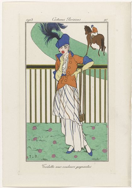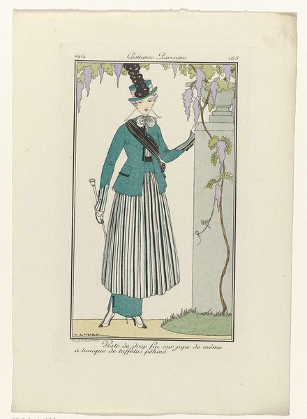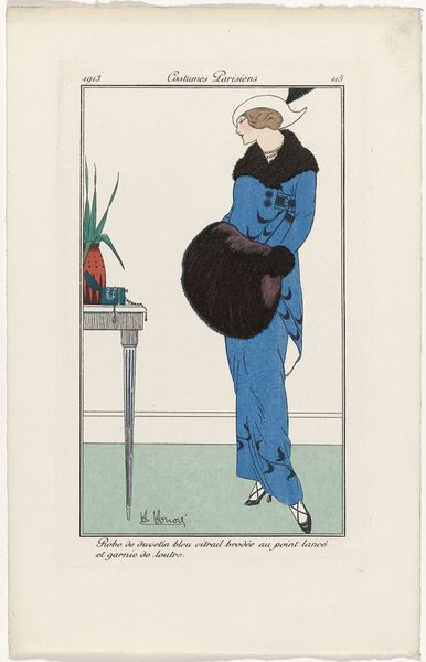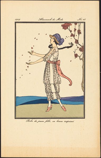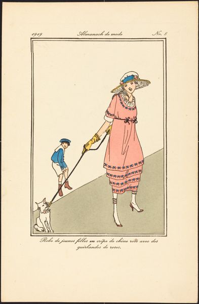 This fashion plate, Costume de serge blanc plissé, was made anonymously in 1919. It has a quiet sort of palette, all gentle blues and greens, like a faded memory. The textures in this print are so delicately rendered. Look at the way the pleats of the coat are suggested, not with hard lines, but with subtle shifts in tone. There’s a real tenderness in that, a sense of something fleeting. You can almost feel the fabric moving, the way light catches on those folds. The colour palette is restricted, but what’s so interesting is how much variation they manage to achieve. The cat, sitting quietly at the bottom, feels like a grounding presence, like a reminder that even in the world of high fashion, there’s always room for something real. I’m reminded of the work of Balthus, who painted cats into all sorts of strange situations, like a window into the unconscious. Anyway, this print is about art as an ongoing conversation, a way of seeing the world through someone else’s eyes, even if we don’t know who they are.