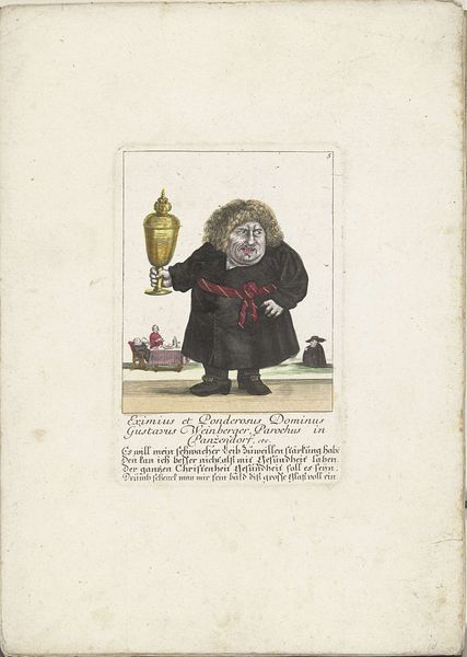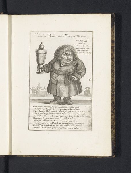 This 1720 engraving, made by an anonymous artist, presents us with a caricature tied to the speculative frenzy of the 'windhandel.' Observe the central figure, a dwarfish man hoisting a grand goblet. This goblet, adorned with a crown, is a symbol of status and prosperity. The goblet is a motif that has recurred throughout art history, from ancient Roman triumphs to medieval banquets, signifying victory, celebration, and often, excessive indulgence. This harks back to Bacchus, doesn't it? Here, though, its meaning is tinged with irony. The figure's grotesque features and the context of the 'windhandel' suggest a critique of superficial wealth and the absurdity of unchecked speculation. It speaks to the collective anxieties surrounding economic bubbles, a fear deeply embedded in the psyche. The image resonates with a primal fear of chaos and instability. These powerful symbols, and their complex interplay, engage us on a deeply subconscious level. Ultimately, this engraving reminds us of the cyclical nature of history and the enduring human capacity for both folly and insight.