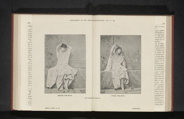 This photograph by J. Ed. Rosch, titled ‘A Study’, is printed on a page taken from a book instructing readers on the technical aspects of metal etching. You’ll notice that the page on the left gives a recipe for asphaltum, an etching resist. Metal etching is a labor-intensive printmaking process. The metal plate is first coated with a waxy, acid-resistant substance and then a design is scratched into the surface, exposing the bare metal. Acid is then applied to ‘bite’ into the exposed lines, creating grooves. Once the desired depth is achieved, the acid is neutralized and the resist removed. The plate is then inked and wiped, leaving ink only in the etched lines, and printed onto paper under high pressure. Consider the relationship between the refined image of the model in her bridal dress, and the means of its technical production. These reproductive technologies democratized art and information, but also relied on complex divisions of skilled and unskilled labor. The presence of this image in an instruction manual underscores the intersection of art, craft, and industrial processes in our understanding of visual culture.