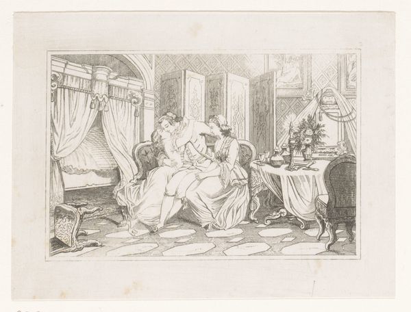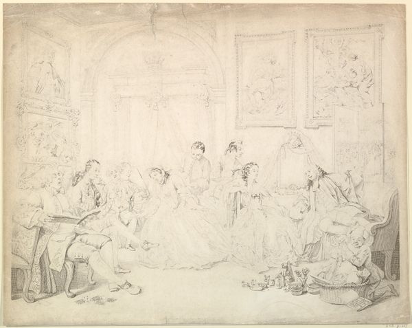 Henry Moses created "Plate of Style," a sepia-toned engraving, which captures a gathering of elegantly dressed figures. Notice the detailed line work which defines the contours of their clothing and the subtle gradations of tone that model their forms. The composition is carefully structured to guide the viewer's eye through the scene. Moses uses the arrangement of figures to create a sense of depth and perspective, drawing us into the social space. We can read the visual semiotics in the style and posture of each figure as a reflection of the codes and conventions of early 19th-century society. Each element – from the folds of the dresses to the arrangement of the furniture – seems meticulously placed to convey a sense of decorum. The engraving is not merely a depiction of fashion, but an exploration of the cultural values attached to appearance and social interaction. This structured composition serves as a lens through which we can examine the relationship between art, fashion, and social identity in the Regency era.