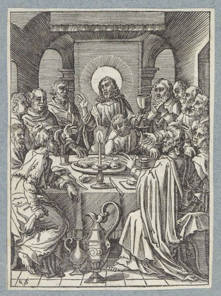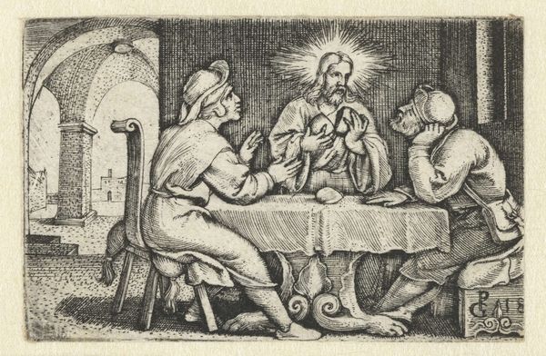 Albrecht Durer made this woodcut, Christ in Emmaus, as part of his Small Passion series. The image illustrates the moment when the resurrected Christ reveals himself to two disciples during a meal. Durer was working in 16th century Germany amidst the rise of the printing press. The cultural context of the Reformation, which challenged the authority of the Catholic Church, had a profound influence on Durer’s work. Woodcuts were relatively inexpensive to produce, making images like this accessible to a wider audience. Note how Durer uses the woodcut medium to create a sense of drama, with the strong contrast between light and dark emphasizing Christ's divinity. The setting, with its humble food and simple furnishings, suggests a focus on personal faith rather than elaborate religious ceremony. The historian can consider the economic, religious, and social factors influencing its production and reception by looking at things like the history of printmaking and the social impact of the Reformation. Art like this helps us understand shifting cultural values.