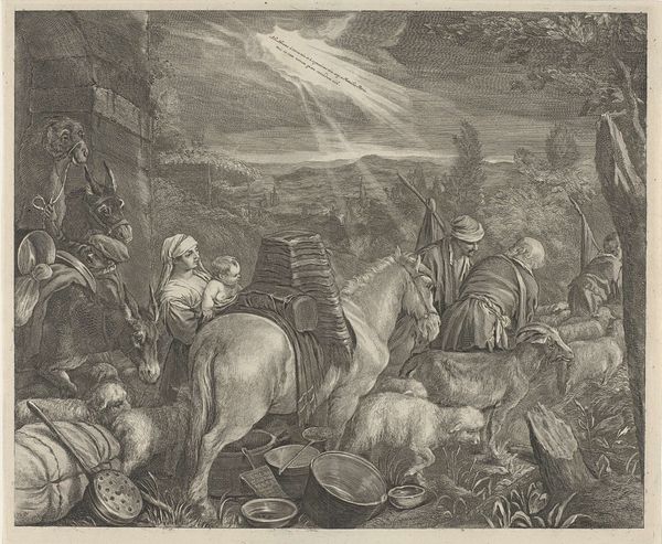 Pieter Bruegel the Elder made this print, The Resurrection, in the mid-16th century. Bruegel lived during a period of intense religious upheaval, witnessing the rise of the Protestant Reformation and the subsequent religious wars that tore through Europe. In this print, Bruegel challenges traditional representations of the Resurrection by setting it in a chaotic, earthly realm. Soldiers are sprawled on the ground, oblivious to the divine event unfolding, their humanity evident in their vulnerability. The witnesses, huddled together, are rendered with an expressive realism that reflects the emotional turbulence of the time. By grounding the sacred narrative in a tangible, relatable world, Bruegel invites viewers to question the role of religion and its impact on their lives. Bruegel's "Resurrection" reflects the societal issues of faith, power, and human fallibility, reminding us that even in moments of transcendence, the complexities of human existence persist.