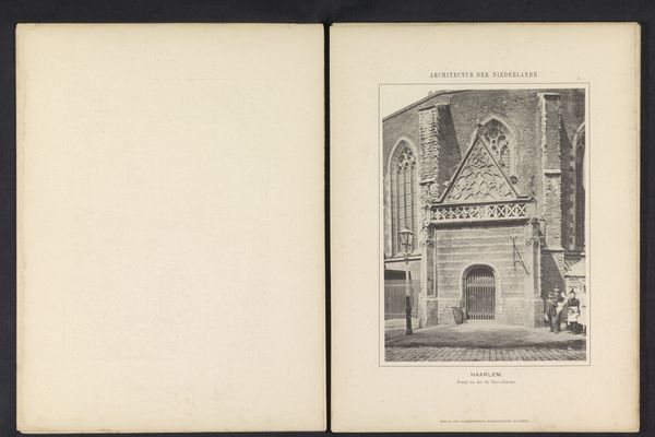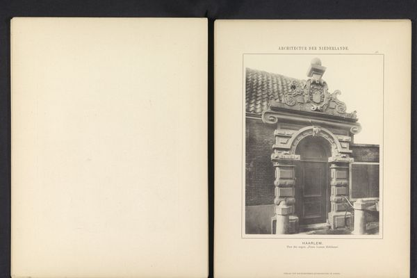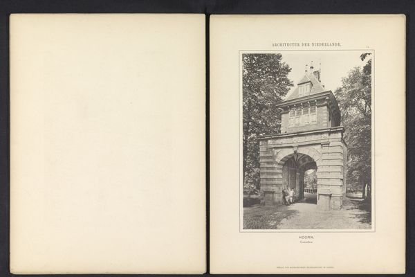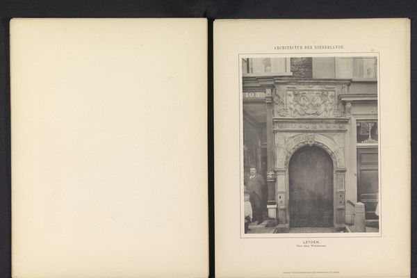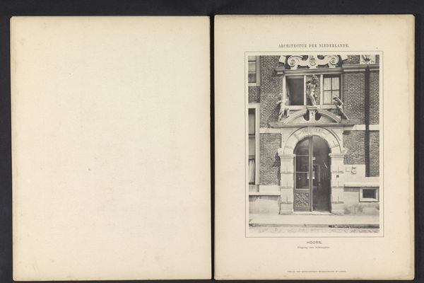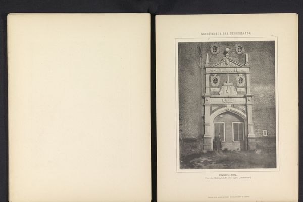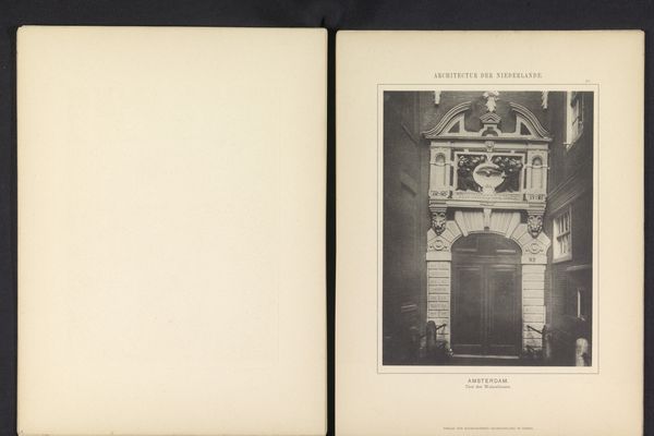 Curator: Before us, we have a photographic print entitled "Gezicht op de trap en een poort van de Wijnhuistoren in Zutphen," which translates to "View of the stairs and a gate of the Wijnhuistoren in Zutphen." This was captured at some point before 1894. Editor: The high contrast gives the stonework an almost palpable solidity, even a kind of austere beauty, though the dark entrance is a bit forbidding. Curator: Yes, and consider that this image forms part of a larger series called Architectuur der Nederlande or, "Architecture of the Netherlands," designed to record and disseminate examples of Dutch architectural achievements, particularly Neo-classicism. It demonstrates a deliberate choice to legitimize a specific aesthetic through accessible means of dissemination. Editor: Exactly. By placing architecture, especially that of a neo-classical style, in a context that promotes nationalism, this photograph subtly advocates for a return to the “Golden Age” by visually celebrating the past. Curator: Notice the symmetry in the archway, those perfect rectangles which is punctuated by the asymmetry of the stairs climbing on the right-hand side. Editor: Which only works to underline the role of who is 'let in'. The imposing nature of that heavy door – whom is it keeping out and why? The very design reinforces existing hierarchies in subtle and less-than-subtle ways, impacting who has access to what. Curator: It’s also significant that photography, even at this early stage, played a crucial role in shaping perceptions of national identity and architectural style. This image would have circulated widely as an affirmation of cultural values. Editor: That's so powerful when considering the limitations that many communities of color still experience when entering artistic spaces or even studying art history within our universities! What’s excluded shapes perspectives as much as what’s highlighted. Food for thought! Curator: It truly is. Considering how it engages in larger themes surrounding aesthetics, power structures, and their dissemination provides fascinating new insight into historical events!