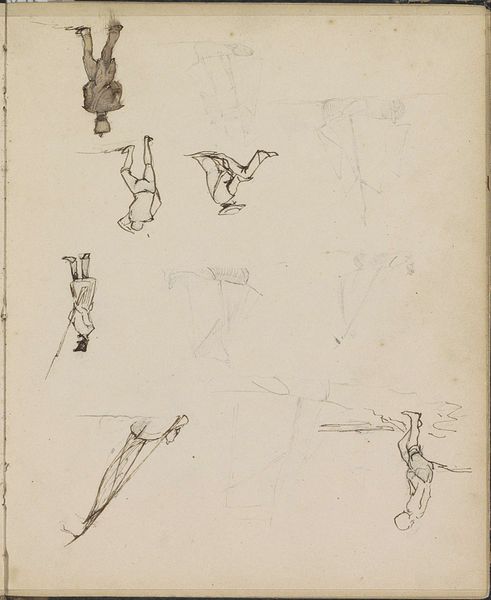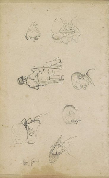 Johannes Tavenraat made this pencil drawing of hunters, pipe-smoking men and a man with a wheelbarrow in the Netherlands, sometime in the mid-19th century. This sketch offers us a glimpse into the daily lives of ordinary people, captured with an immediacy that speaks to the changing social landscape of the time. Consider the clothing and activities depicted. The hunters, likely members of the leisure class, stand in contrast to the working man pushing his wheelbarrow. The rise of industrialization and urbanization in the Netherlands during this period created new social divisions and class tensions. The presence of pipe-smoking men could allude to the growing tobacco industry and its impact on Dutch society. Art historians might consult period newspapers, trade records, and social commentaries to contextualize this drawing further. By examining such sources, we can understand how Tavenraat's work reflects and responds to the social, economic, and cultural forces shaping 19th-century Dutch society.