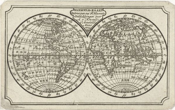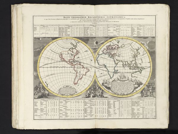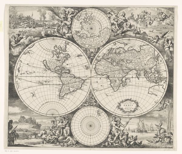 Johann Baptist Homann created this hand-colored engraving titled "Planiglobii Terrestris Mappa Universalis..." during a time of burgeoning European exploration and colonization. It reflects an era where mapping was as much about asserting dominance as it was about geographical accuracy. Notice how Europe and parts of Asia are rendered with greater detail, centered and highlighted, a visual cue that subtly reinforces a Eurocentric worldview. This map isn't just a neutral depiction of landmasses; it's a statement about power, knowledge, and the "known world" as defined by European cartographers. What stories are told by what is included, and perhaps even more powerfully, what is left out? Consider how this image might have shaped the perceptions of those who viewed it, influencing their understanding of different cultures and geographies, and solidifying the idea of a world organized around a European center. It's a potent reminder that maps are not objective truths, but rather constructions reflecting the biases and intentions of their creators.