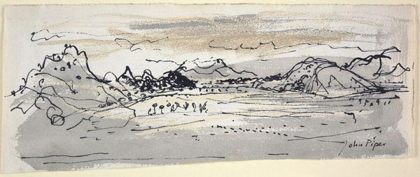 Curator: Rodolphe Bresdin, born in 1822, crafted this piece, "Mountainous Landscape with Cattle and a Castle." Note its petite scale, only 6.3 by 13 centimeters. Editor: It feels like a dreamscape, a fleeting thought captured in frantic lines. There’s a raw energy, almost untamed, in the penwork. Curator: The composition is intriguing. Observe the strategic use of hatching and cross-hatching, a technique Bresdin employed to generate depth and texture. Editor: It’s wild, right? The castle perched precariously, the scraggly vegetation. It’s not idealized; it's a bit menacing, even with those tiny cows. Curator: Precisely! Bresdin eschews classical conventions, opting instead for a subjective interpretation. His manipulation of line subverts traditional notions of pictorial space. Editor: I see that, but the landscape’s got a story, too—a sort of dark fairytale. I wonder what Bresdin wanted us to feel looking into it. Curator: Perhaps to question the boundaries between observation and imagination, representation, and abstraction. Editor: So, less about the mountain and more about how we see the mountain? I think I'll carry that idea with me today.