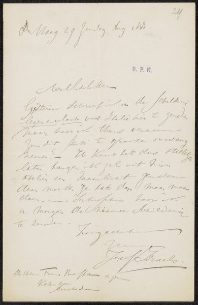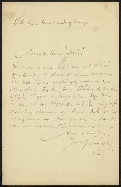 Johannes Stroebel created this letter to an unknown recipient, possibly C.J. de Lang, using paper, ink, and a quill or pen, around 1849. These simple materials speak volumes about the technologies of communication at the time. Notice the texture of the paper, likely handmade, and the way the ink bleeds slightly into its fibers, giving each stroke a personal, almost intimate quality. The handwriting itself, with its flourishes and careful formations, reflects the value placed on penmanship as a skill. Consider the time taken to craft each letter, and the labor invested in producing both the paper and the message itself. In a world of mass-produced communication, this letter stands as a testament to a slower, more deliberate mode of interaction, one that invites us to reflect on the human connection embedded in the materials and processes of its creation. It’s a potent reminder of the social context of even the simplest objects.