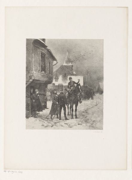 Charles Joseph Beauverie created this snow-covered village scene using etching, a process that employs acid to create delicate lines on a metal plate. Beauverie’s artistic career occurred during a time of significant social and economic change in Europe. The shift towards industrialization often led artists to reflect on rural life. In this quietly compelling print, Beauverie invites us to consider the intimacy of village life. Notice the figure in the doorway. Is it the lady of the house? Perhaps she is watching the horse-drawn wagon move along the snowy lane. The artist presents a scene of rustic simplicity but the lack of figures raises questions. Has the town been devastated? Is it simply a cold day? Beauverie asks us to pause and consider those who inhabit these snow-laden buildings and the emotions that tie individuals to their communities.