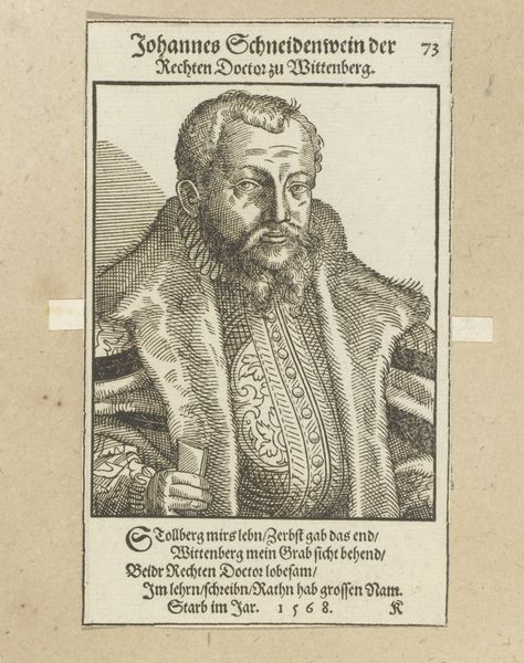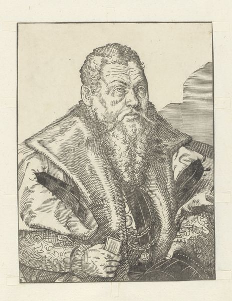 Editor: This engraving, "Portret van een onbekende man," from the late 16th century by an anonymous artist, is strikingly detailed. I’m particularly drawn to the sharp contrast and textures achieved through the lines. How do you approach analyzing this portrait from a formal perspective? Curator: We can begin by observing the structural elements at play. The subject is centrally positioned, lending a sense of balance and authority. The linear precision of the engraving emphasizes contours and details. Consider the artist's careful manipulation of line weight; darker, denser lines create shadows and depth, while lighter lines suggest highlights and surface texture. Observe the interplay between the ornate clothing and the individual’s features. How does that relationship inform our understanding? Editor: It feels like the clothing is competing with the face for attention. There’s almost too much detail! Does that create a sort of visual tension, perhaps? Curator: Precisely. The elaborate ruff, the decorative patterns in the clothing, and the weighty chain contrast with the more subtly rendered facial features. This could be interpreted as a symbolic representation of the tension between outward appearance and inner character, or the conflict between wealth and individuality. Editor: The way you describe the tension created by the various elements really enriches my viewing. I hadn’t considered the individual details as potentially conflicting with each other before. Curator: Formal analysis allows us to appreciate the artist’s technique and the nuanced ways in which visual elements can convey meaning. Paying attention to the structure illuminates underlying relationships, allowing the artwork to communicate beyond surface-level representation. Editor: That's a great point. I’ll certainly be more attentive to these elements when viewing artworks going forward. Thanks for illuminating the formal approach!