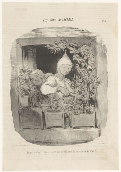 Lambertus Antonius Claessens created this print called "Vrouw wacht op haar geliefde" – or "Woman waiting for her lover" – using etching and engraving techniques. Claessens lived through a time of revolution and change, his artistic expressions often echoed the societal norms and expectations of his era. Here, a woman is depicted in a private moment, framed by a window, gazing outward with anticipation. The artwork prompts questions about the representation of women, particularly within the context of courtship and romantic relationships. Claessens was working at a time when gender roles were rigidly defined, and women were often portrayed as passive objects of desire, waiting for male attention. This artwork presents a narrative steeped in expectation, but also one that hints at the interior life of women during this time. The details of her dress and surroundings offer insight into the social status and cultural values that shaped her existence. "Vrouw wacht op haar geliefde" becomes a poignant reflection on the experience of women.